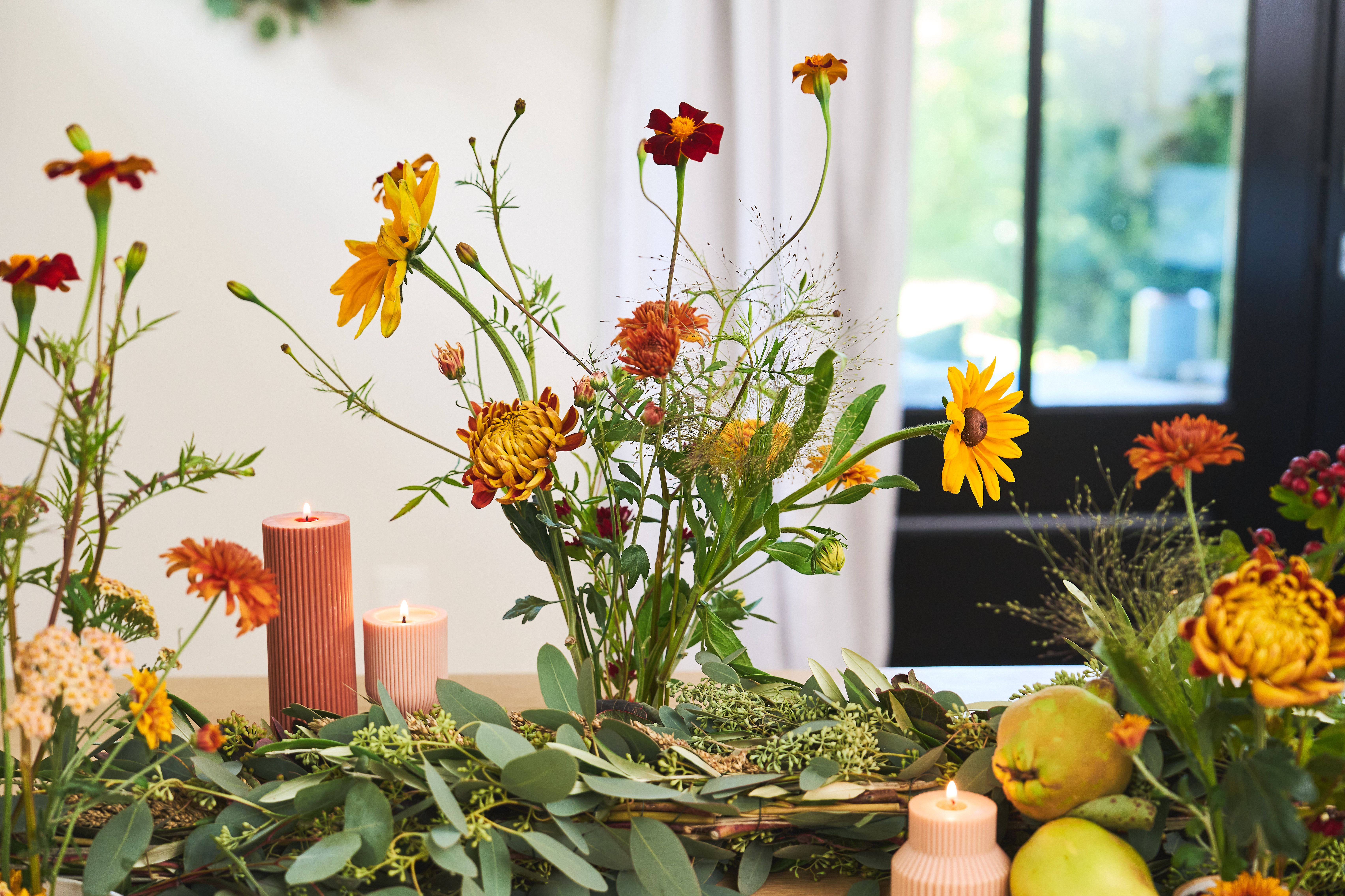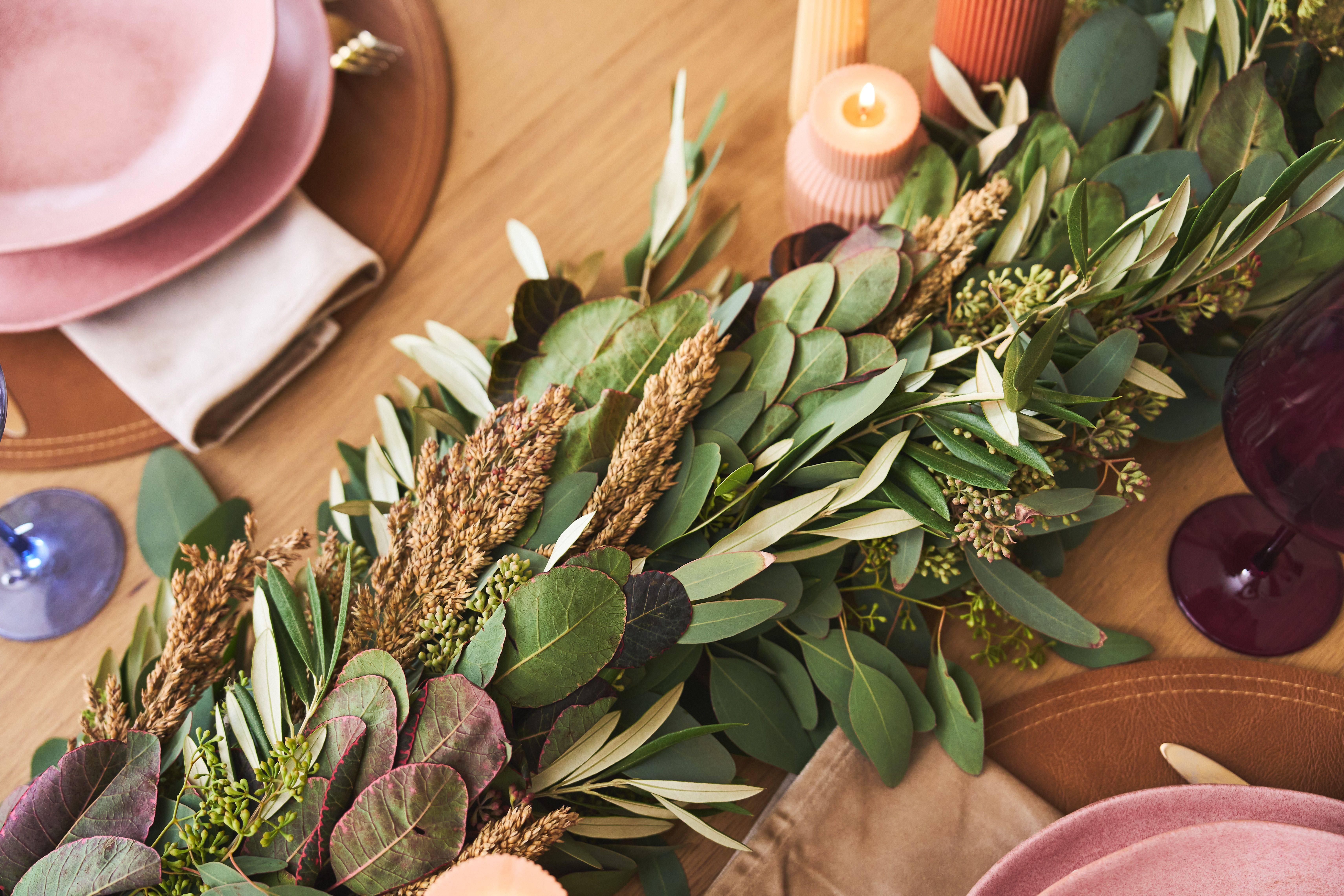 We’re bringing all that fall goodness indoors — turning simple, easy-to-forage foliage into a wreath and garland that carry the season’s charm from your front door to your dinner table.
