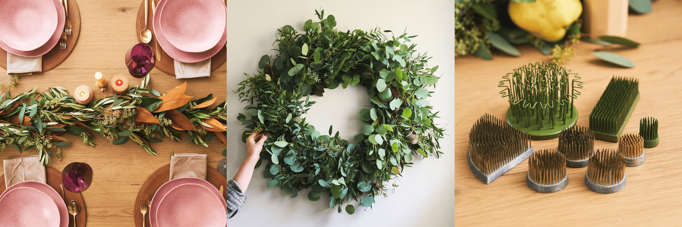 If you think this DIY is not really for you, and you want to jump into the flower part, you can get one of our pre-made, ready-to-show-off Wreaths and Garlands! Then scroll to start playing with Flower Frogs!