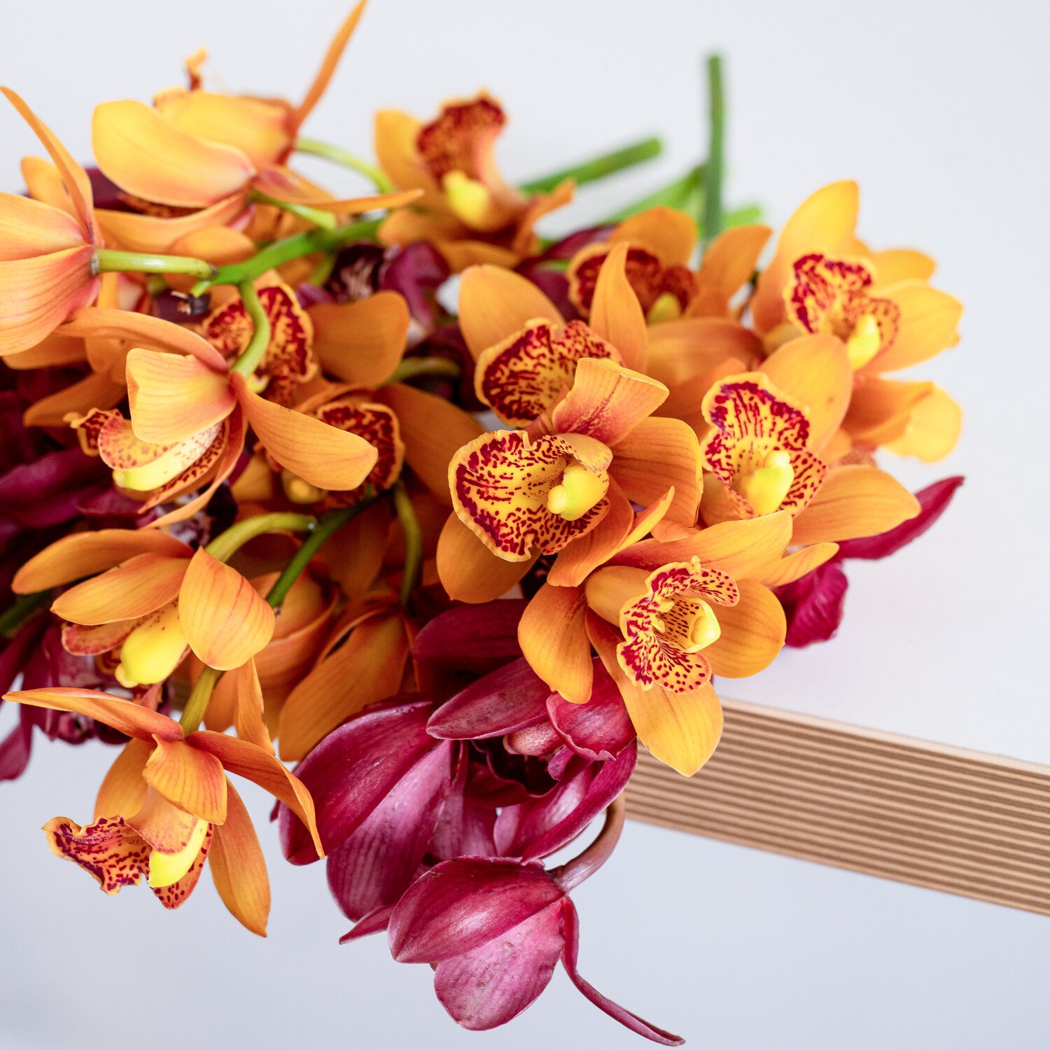 Cymbidium orchids are one of our favorite ways to fancy up and modernize any space! The word cymbidium originates from Greek and means boat, and refers to the blooms’ special shape. Originally native to tropical and subtropical parts of Asia, cymbidium orchids are now grown all over the world.