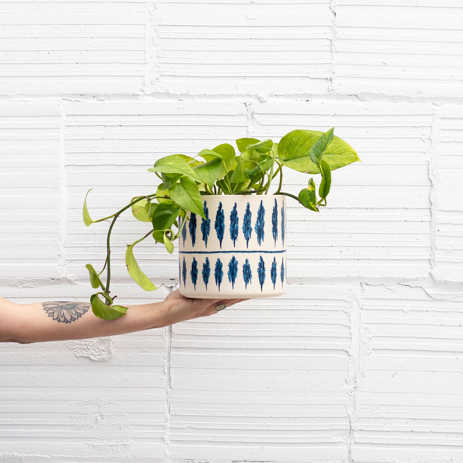 Pro Tip: Place your pothos on a shelf (so its luscious leaves have room to grow down) or give it something to hold onto (so it can grow up), as these plants are known to grow up to 10 feet!