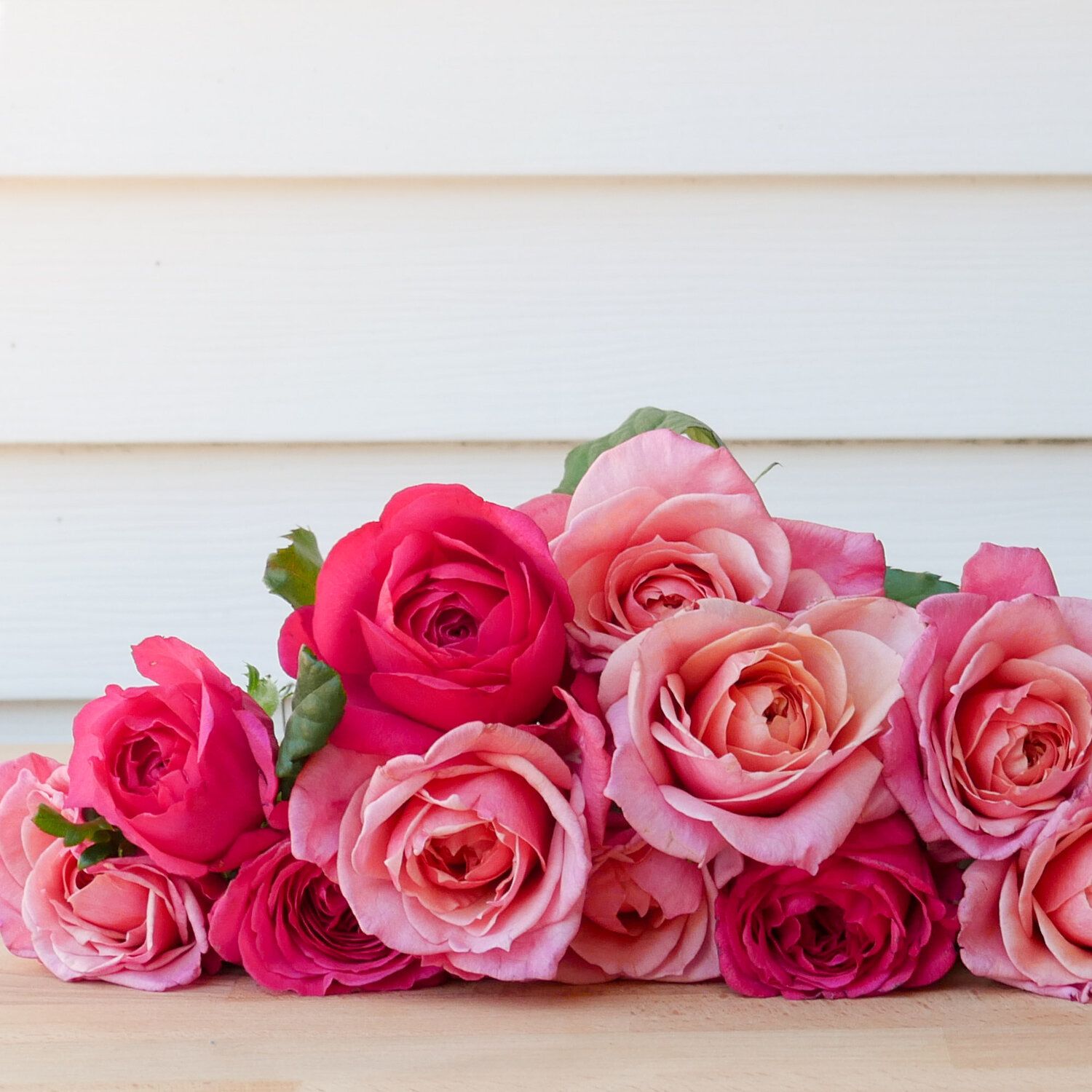 To prepare your roses for the vase(s), simply remove any foliage that will fall below the vase waterline, drop your stems into the vessel(s) of your choice, and you’re done!