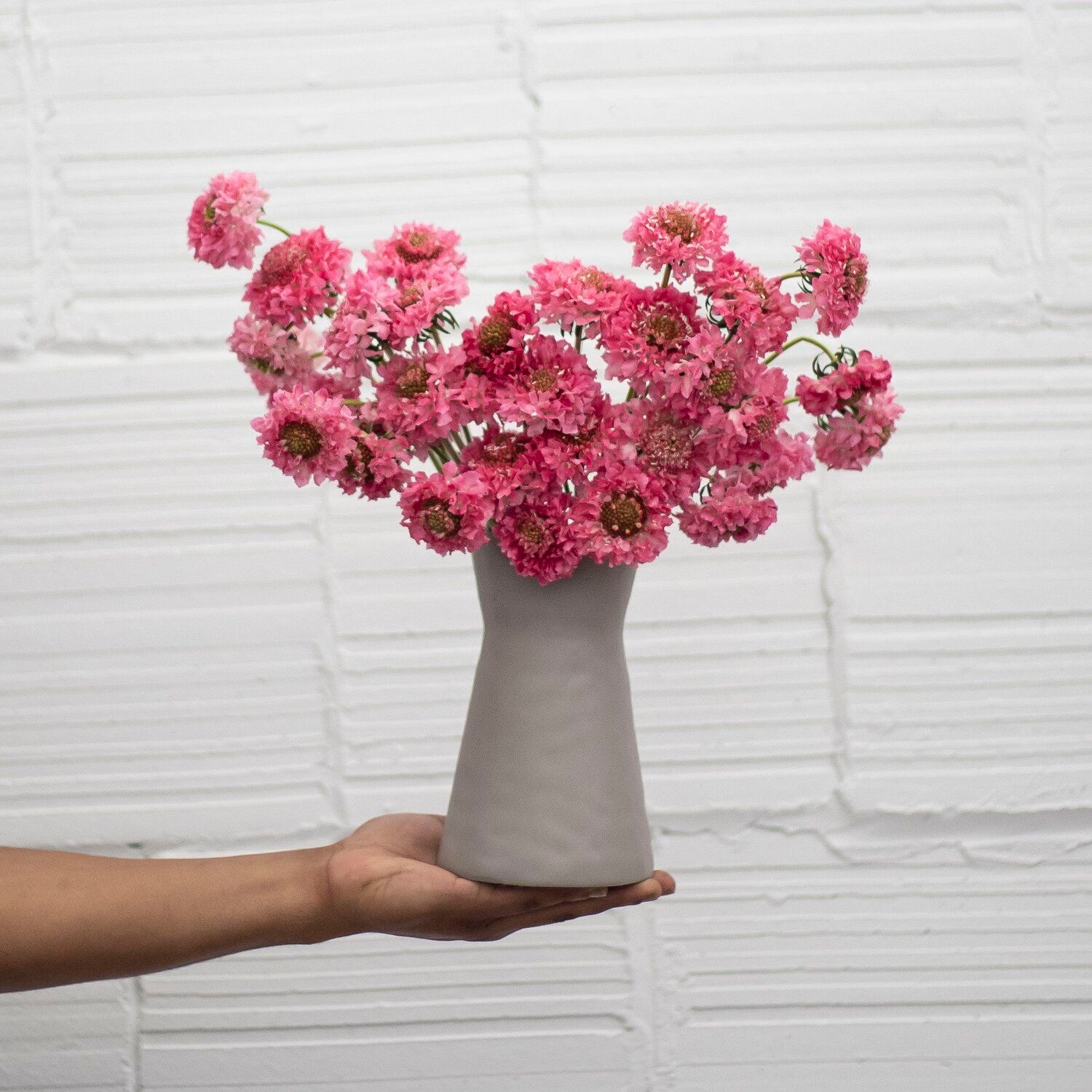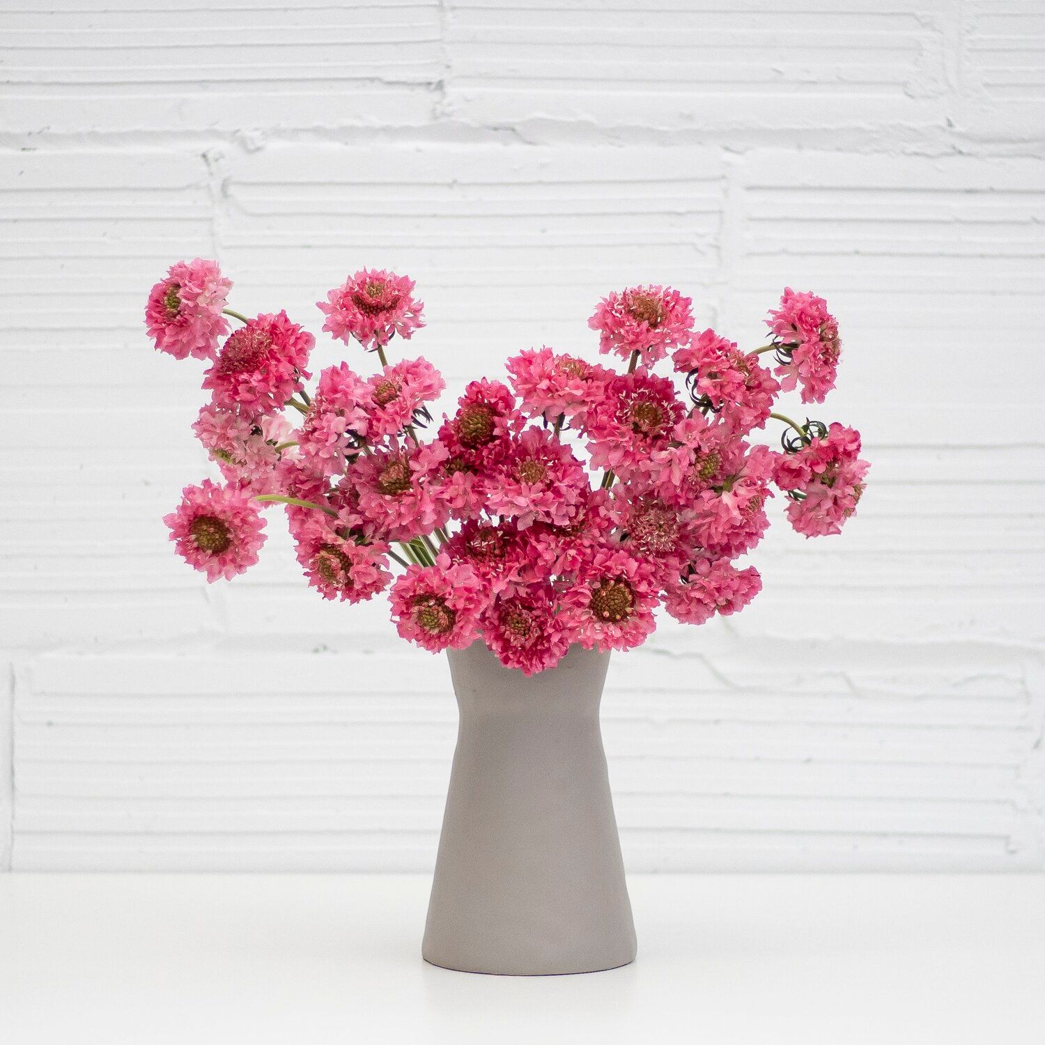 Your scabiosa will need a tall drink of water after their long trip! Just fill the vase with cool tap water and pop the stems in (after you’ve trimmed them of course)!